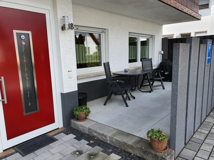 - Terrasse mit Sitzplatz und Holzkohlegrill