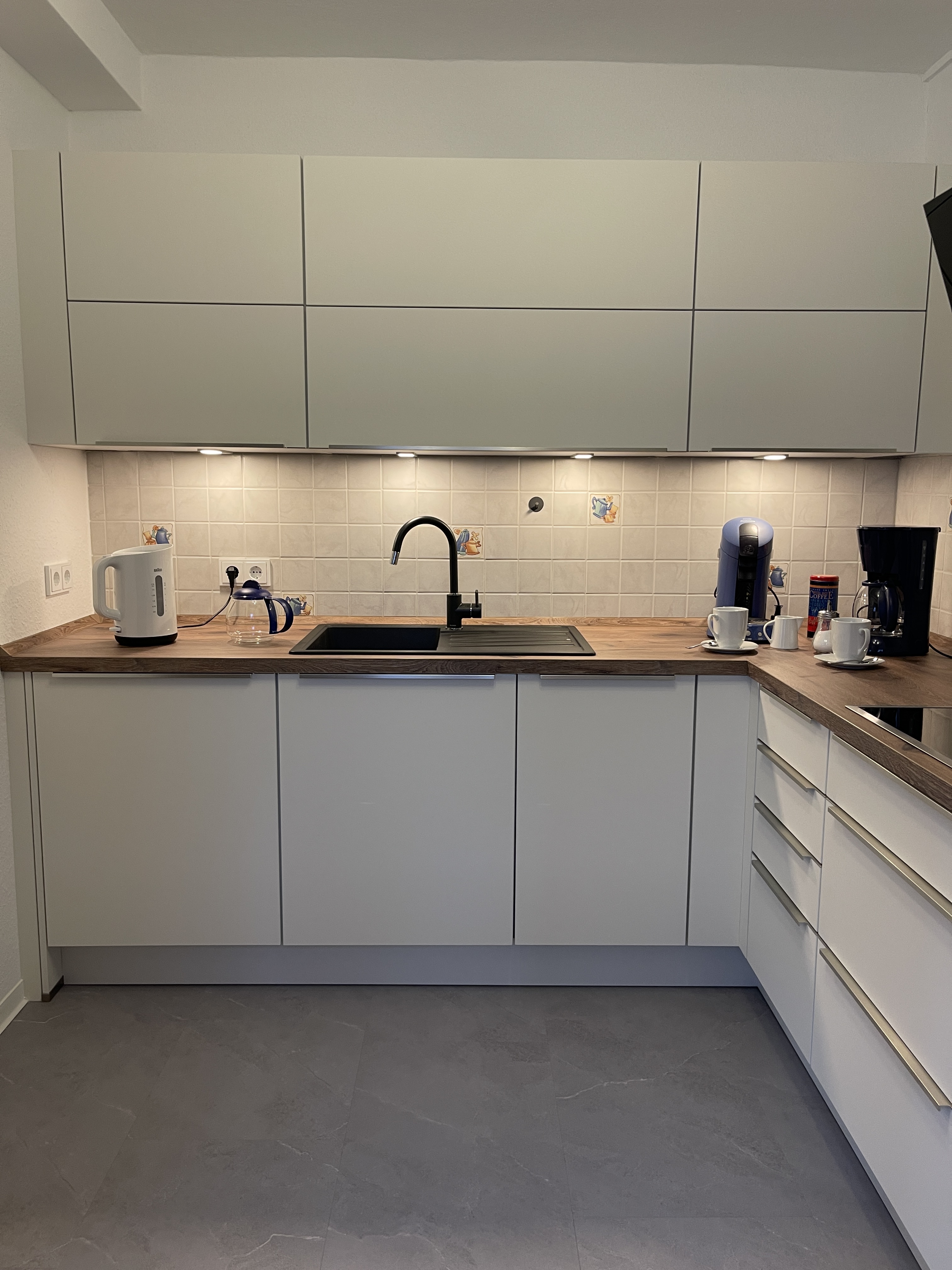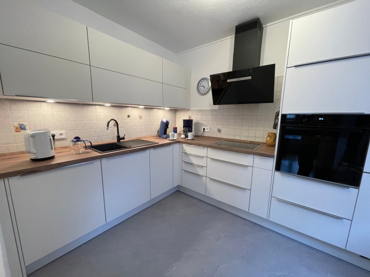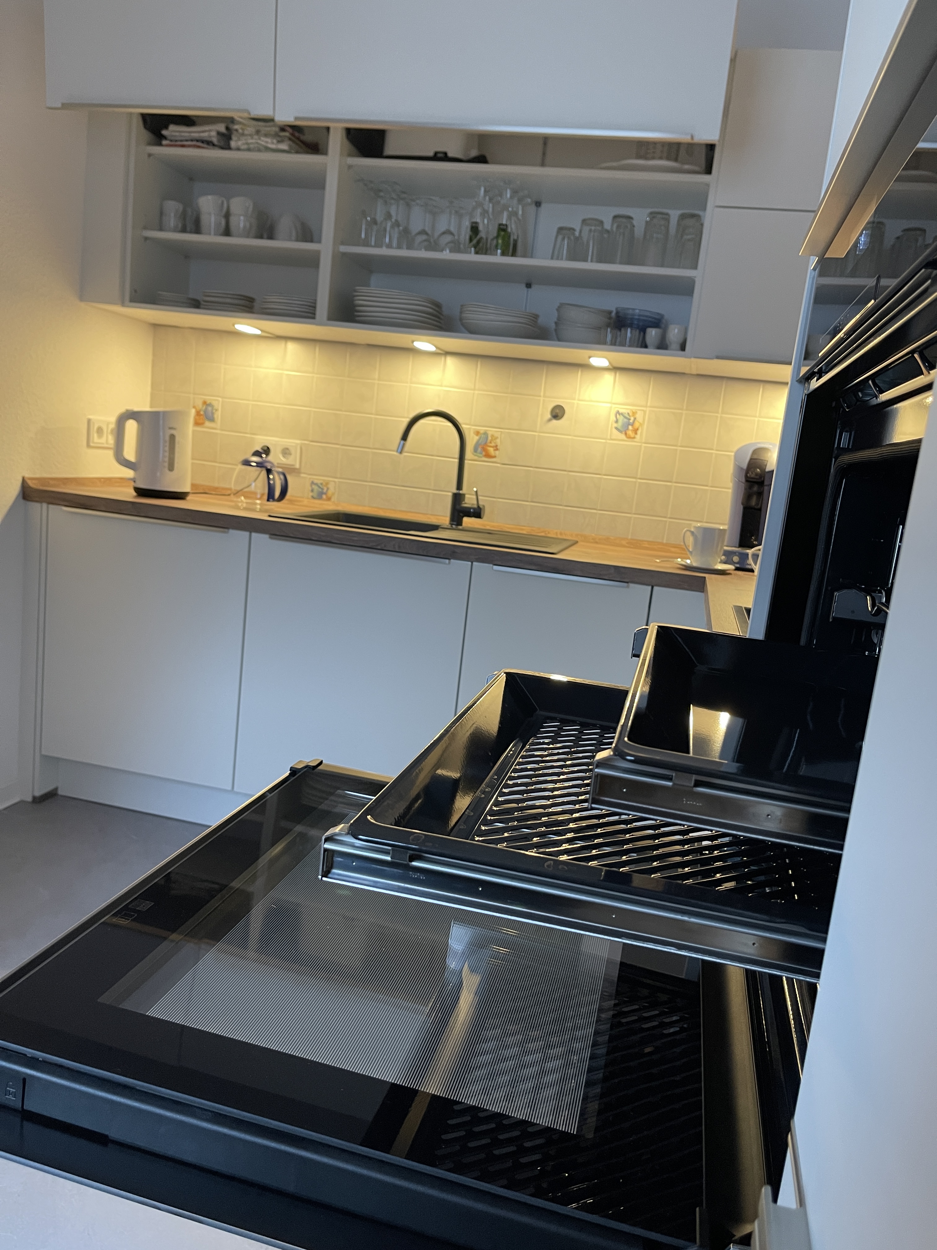 Seit Februar 2025 steht Ihnen eine komplett neu renovierte Küche zur Verfügung mit neuen, hochwertigen Geräten: Ceran-Kochfeld, Backofen mit Auszügen und Air-Fry-Funktion, Spülmaschine sowie ein extra-geräumiger Kühlschrank mit großem Gefrierfach.